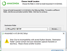 | [Anaconda] 설치시 오류 : 'Destination Folder' cannot contain non-ascii characters (9) | 2017.09.15 |