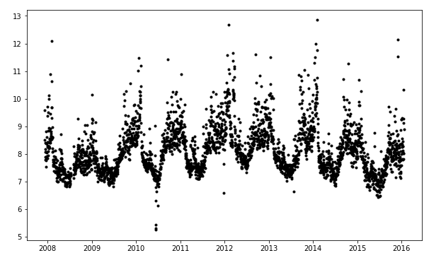 ax.plot(model.history['ds'].dt.to_pydatetime(), model.history['y'], 'k.')