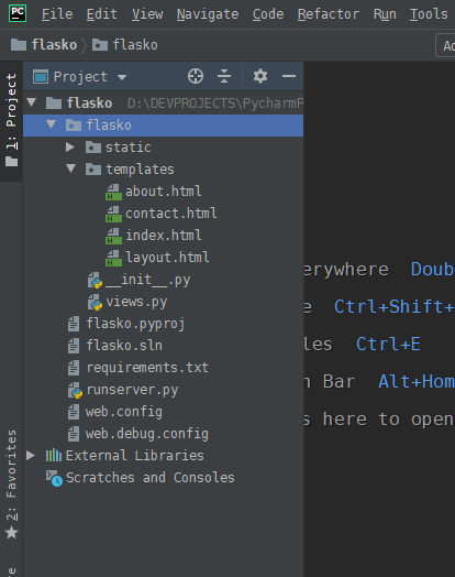 PS D:\DEVPROJECTS\PycharmProjects\flasko> dir