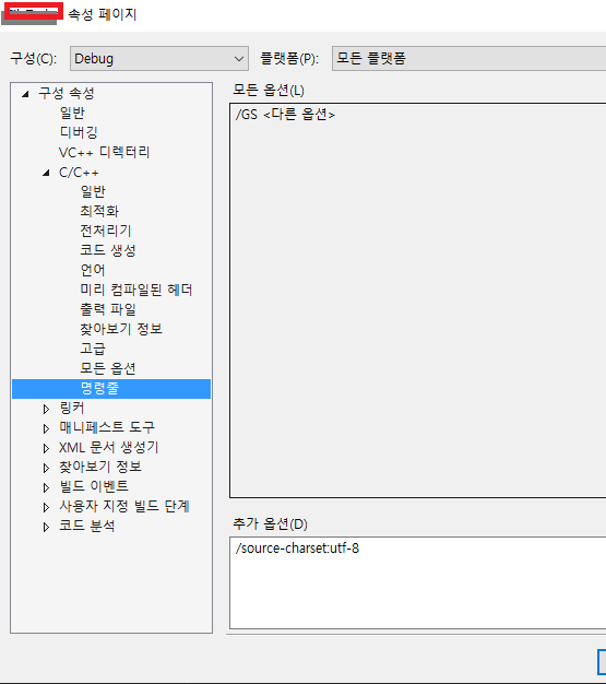 /utf-8(소스 및 실행 파일 문자 집합을 UTF -8로 설정)