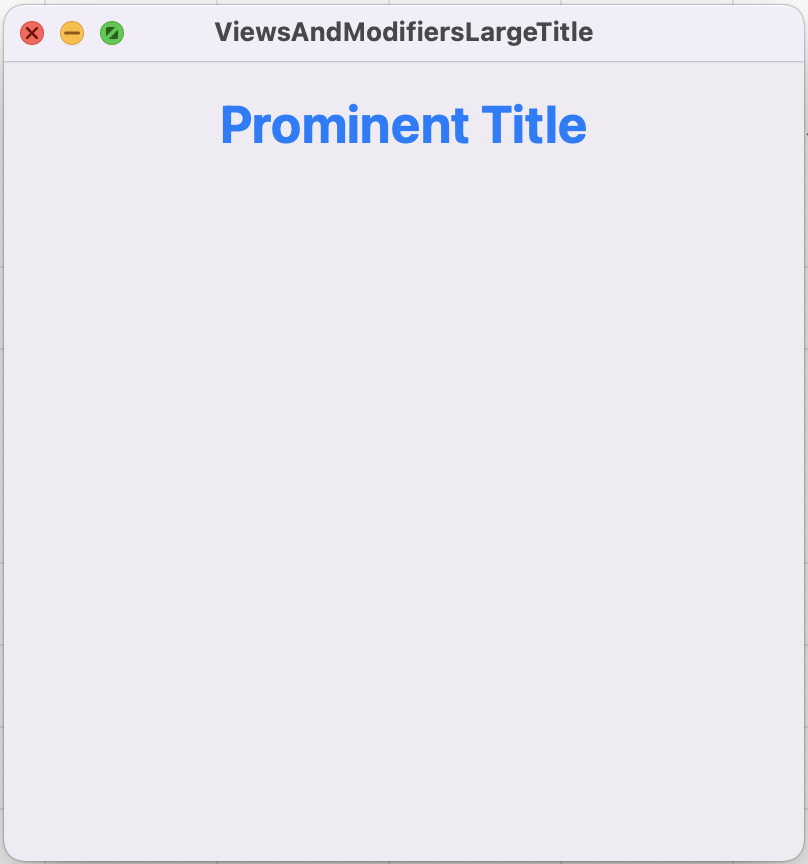 Create a custom ViewModifier (and accompanying View extension) that makes a view have a large, blue font suitable for prominent titles in a view.
