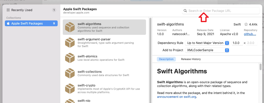 프로젝트 설정 쪽에 package 관리하는 곳이 있었고, package 추가하면 창이 뜨고 쭉 하면 되더라. 간단한 건데, 혹시 나처럼 헤맬 사람들을 위해 캡쳐화면을 떠서 포스팅을 작성한다. xcode 13 이다.