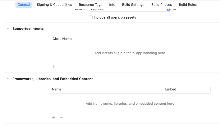 잘 동작하는 기존 어플리케이션에는 여기에 xpc service 가 추가되어 있었고, 새로운 타겟에는 설정이 비어있었다.