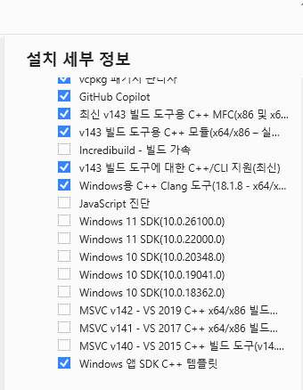 문제는 vs2017 툴셋이 vs2017 설치하면서도 깔리고, vs2022 설치의 옵션에도 깔려 있었다. 두 개 중에 어떤 걸 사용해야 할 지 몰라서 경로를 찾지 못한 것 같다.